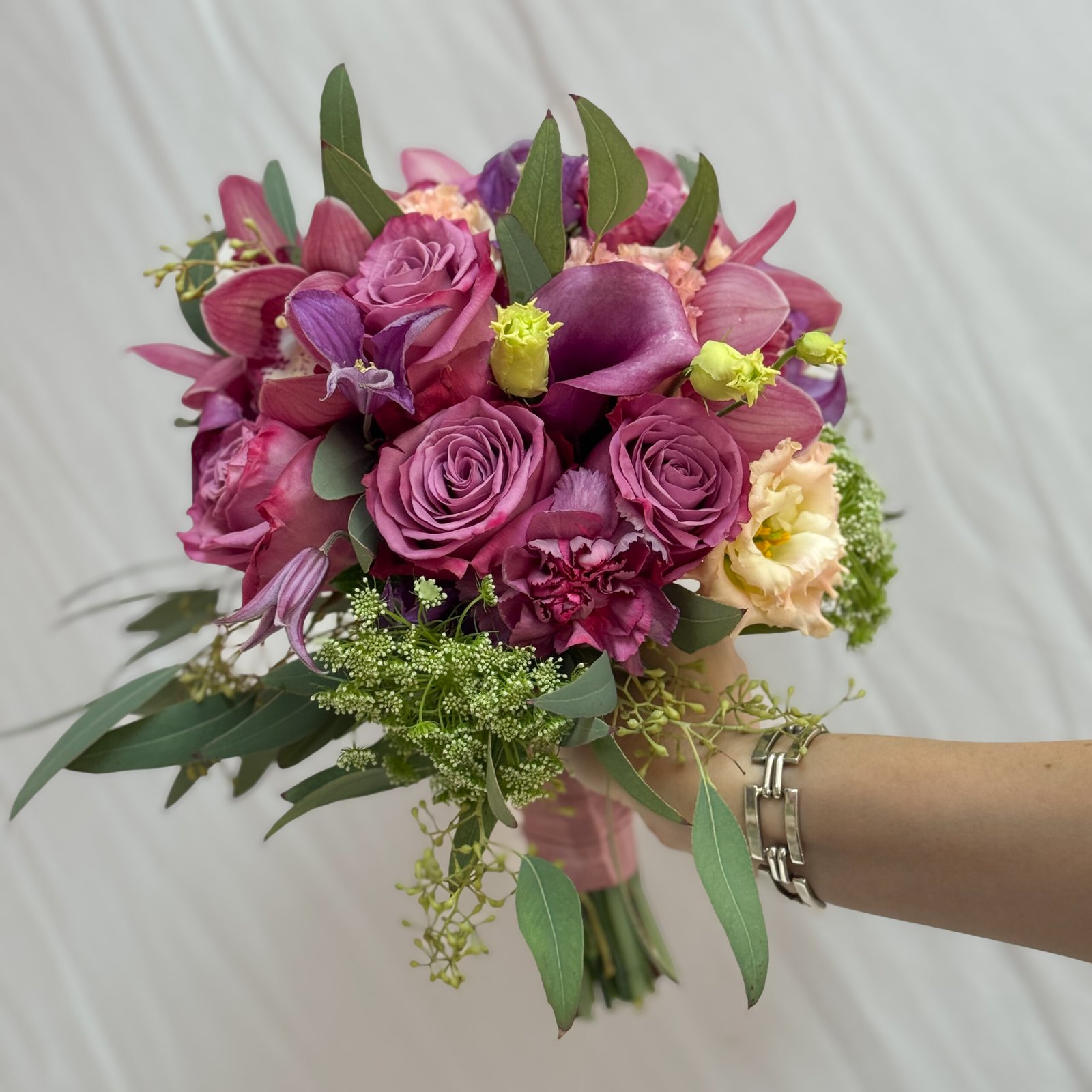 The lilac bridal bouquet is a sophisticated and romantic choice for brides who seek elegance and delicacy on their special day. Lilac and lavender tones symbolize love, serenity, and femininity, making this bouquet the perfect complement to a modern or classic wedding.