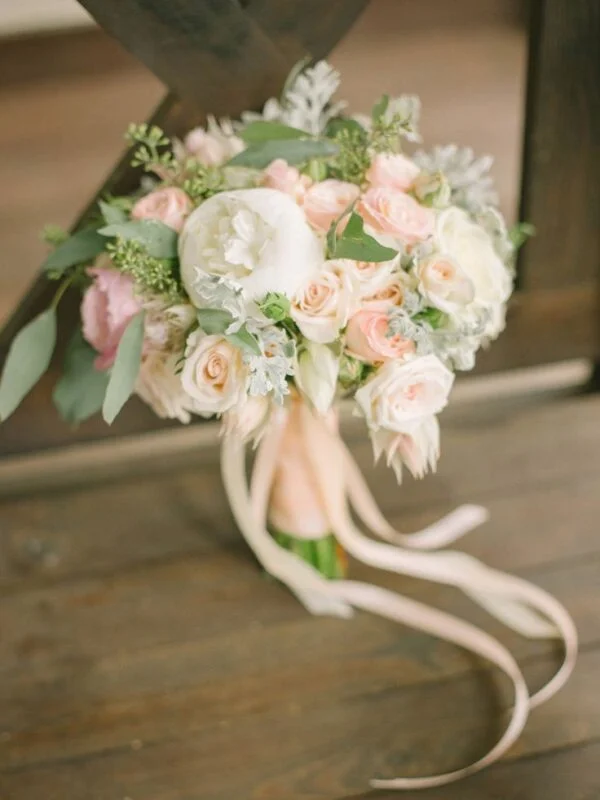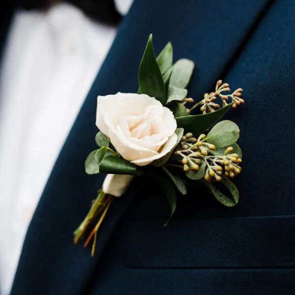 elaboración del ramo de novia y boutonnière para el novio;